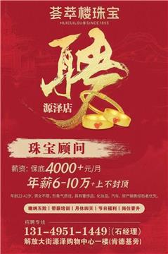 荟萃楼珠宝阿城源泽店高薪诚聘珠宝顾问基本工资6000上
